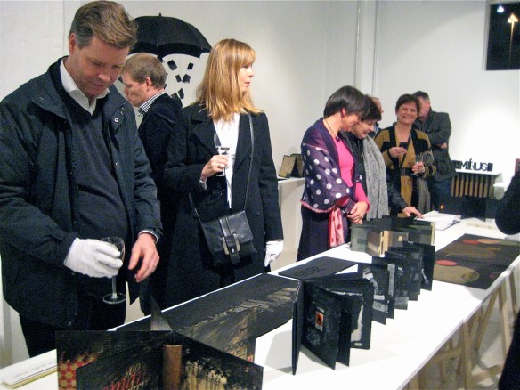 Kæru sýningargestir: Takk fyrir frábærar móttökur! Opnunardaginn var fullt út úr dyrum í sýningarsalnum á Tryggvagötunni og hafa margir lýst ánægju og undrun yfir fjölbreyttum og margslungnum bókunum. Fréttastofa sjónvarps sýndi örstutt skot í lok frétta skömmu eftir opnun. Það má sjá hér.