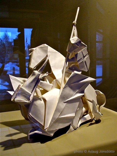DaveBrillStGeorge Published January 30, 2013 at 480 × 639 in Arkirnar sléttar og felldar – Enjoying Origami Origami by Dave Brill: St. George and the dragon